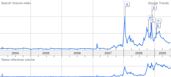 Here is an interesting chart from Google Trends. Makes me think that recession is not so much on your mind