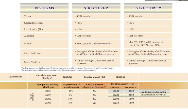 Simply put, this is a debenture with the interest rate linked to the price of gold. So that means your principal is protected (to the tune of 30%) and the interest rate is linked to the price of gold. Since this is a debenture, this exposes you to counter party risk, however low you may perceive that to be (remember Lehman?).