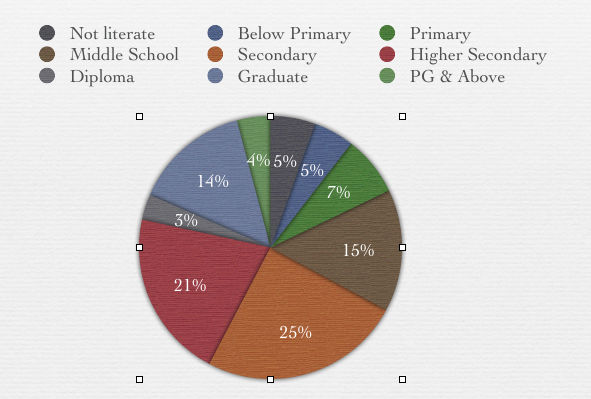 Now let’s look at the education levels for all of Goa. The survey splits it up further into urban / rural, and male / female, but for this I’m going to take the number at the consolidated levels only.