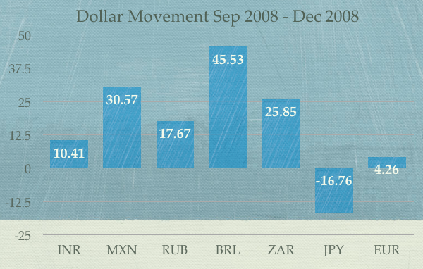 Here is how these currencies fared against the US Dollar during the 2008 crash.