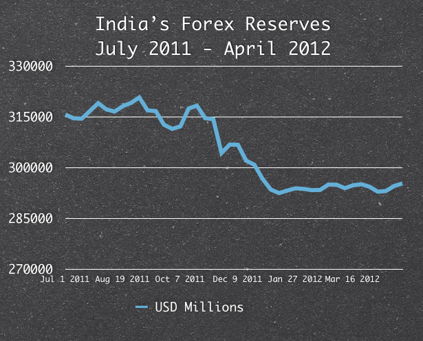 RBI publishes the reserve position every week and I took data from July 2011 till the most recent date and charted it here.